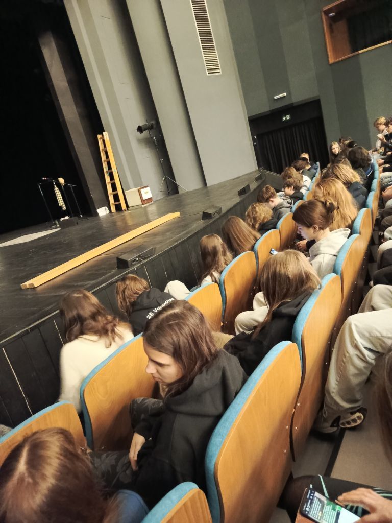Ve středu 26. 11. navštívili žáci devátých tříd nově zrekonstruované prostory Domu kultury Ústí nad Labem. S průvodcem si prohlédli interiér budovy a poté zhlédli představeni Emil čili O Háchovi z repertoáru Divadla D21. Děkujeme za představení budovy i zajímavý divadelní zážitek. Velký dík patří i organizátorce Nicol Magrotové za pomoc při komunikaci.