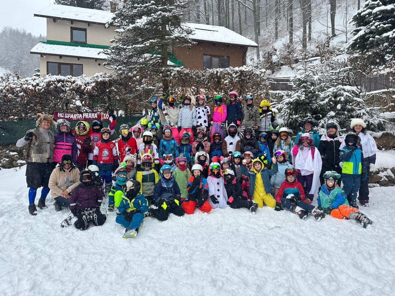 Coby zázemí si již tradičně pronajímáme od místního spolku klubovnu se sociálním zařízením a s krbem, kde se děti mohou kdykoli přijít ohřát a dopřát si teplého čaje, který jim po celou dobu kurzu připravujeme. Na obědy tradičně docházíme do Penzionu Tereza, kde se sice před třemi lety změnili majitelé, ne však kvalita obědů s ochotnou obsluhou. Vždy je polévka, hlavní jídlo a nápoj a děti si chodily hojně pro přídavky, což samo o kvalitě tamních pokrmů vypovídá. Tradiční akcí kurzu na Telnici je rej v maskách, kdy děti v tzv. třetí krizový den (ve středu) vyjedou na lyžích oděni do různých pohádkových či jiných postav viz přiložené hromadné foto, které si zároveň každý účastník kurzu odveze na památku.